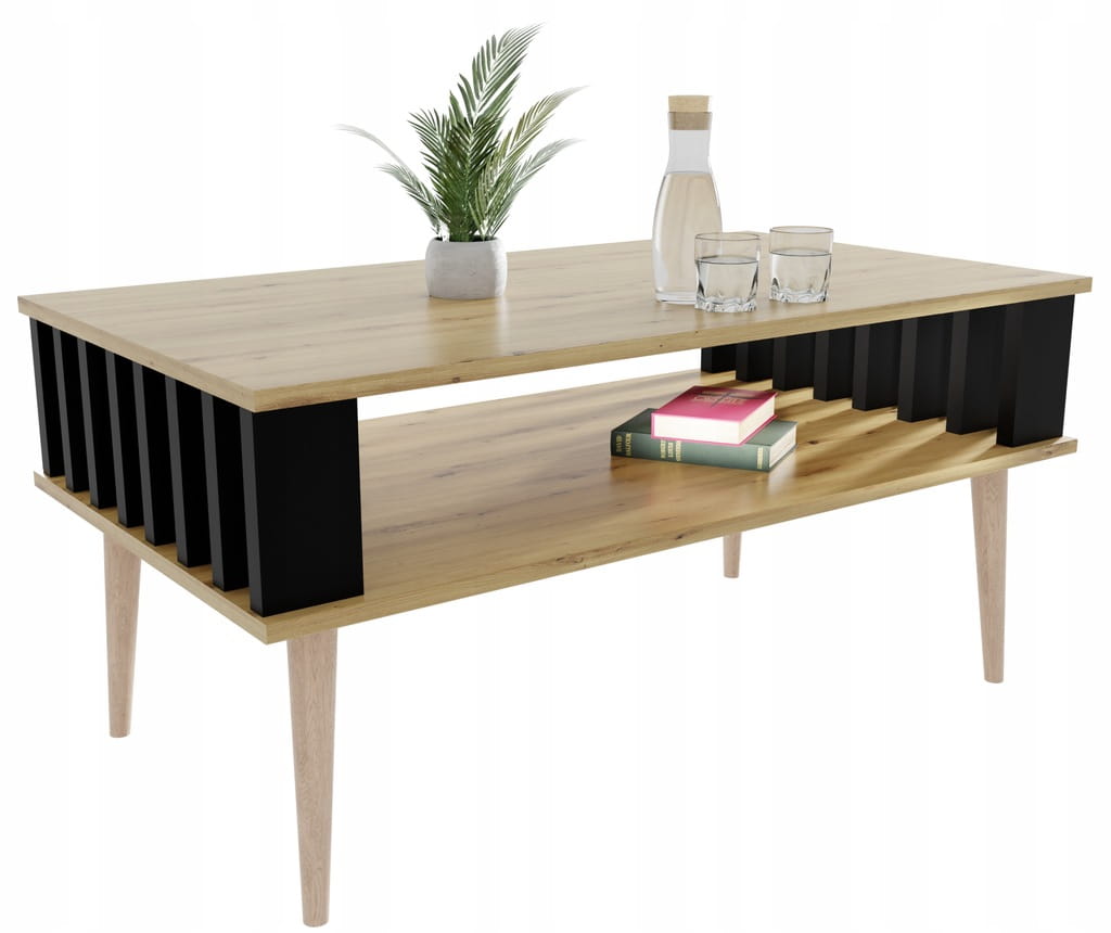 Stolik kawowy LAMELE do salonu artisan/czarny ława