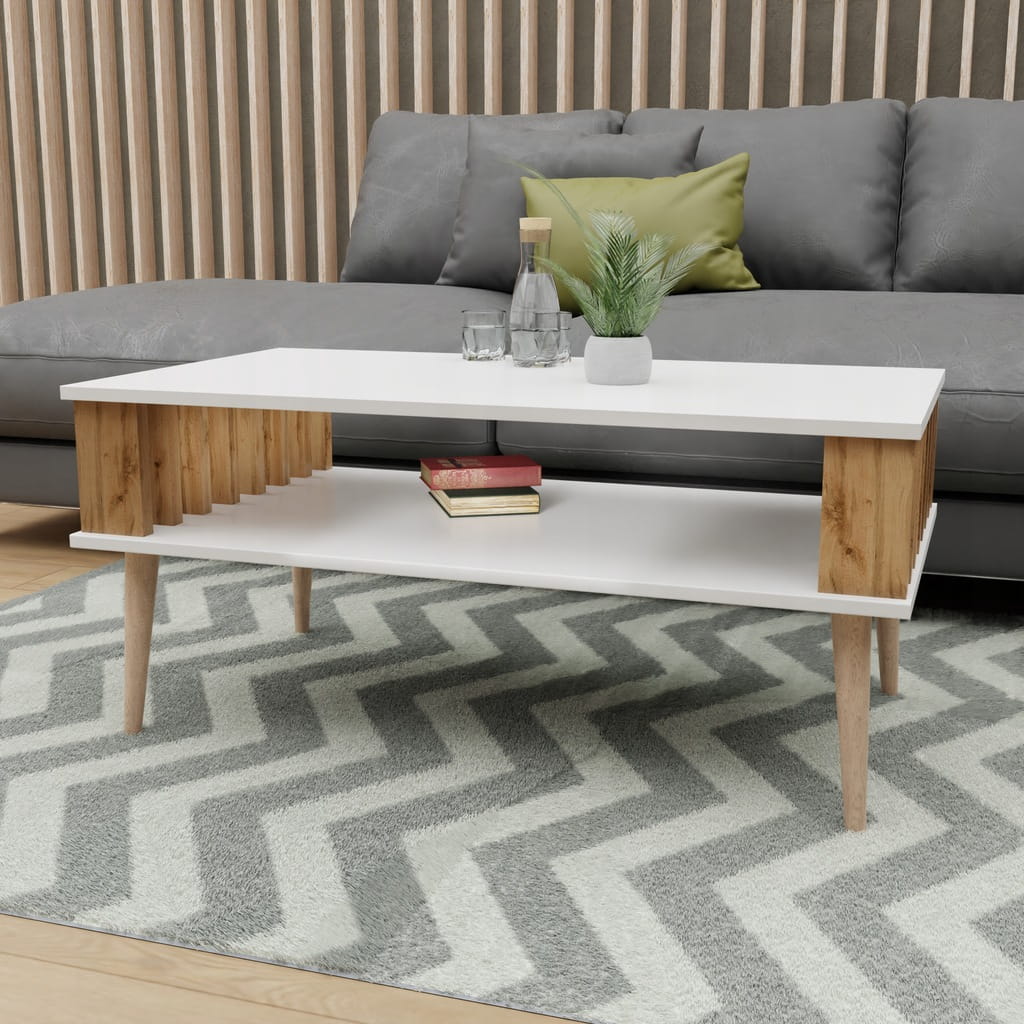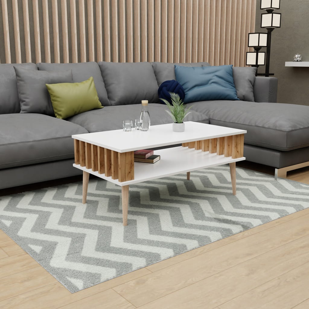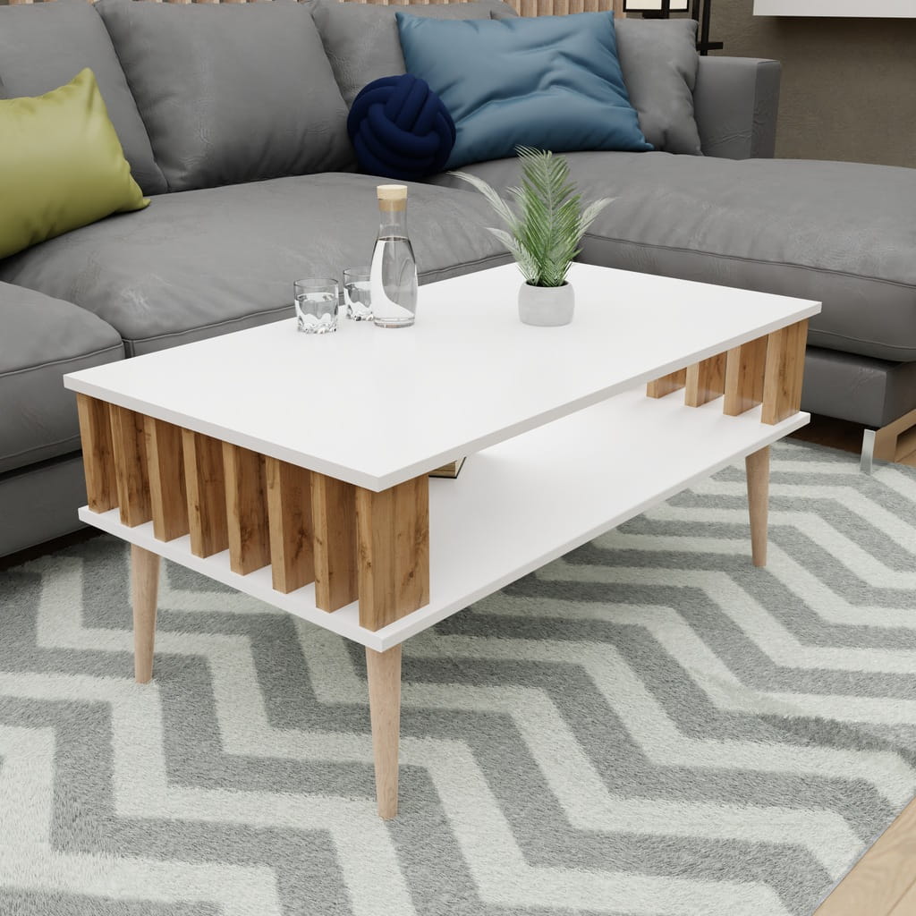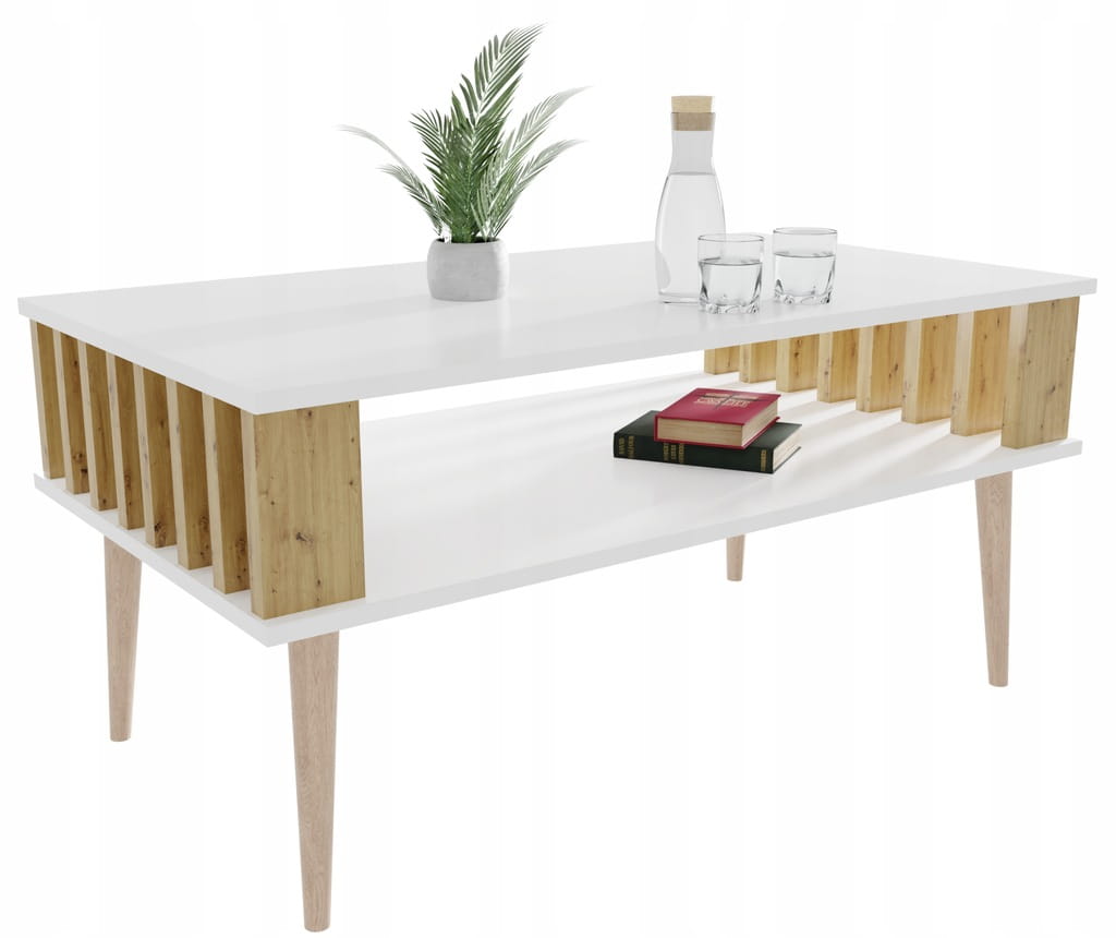 Stolik kawowy LAMELE do salonu biały/wotan ława