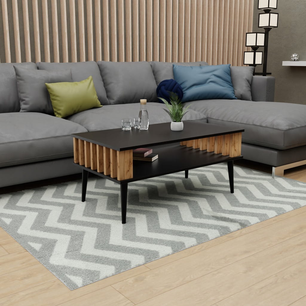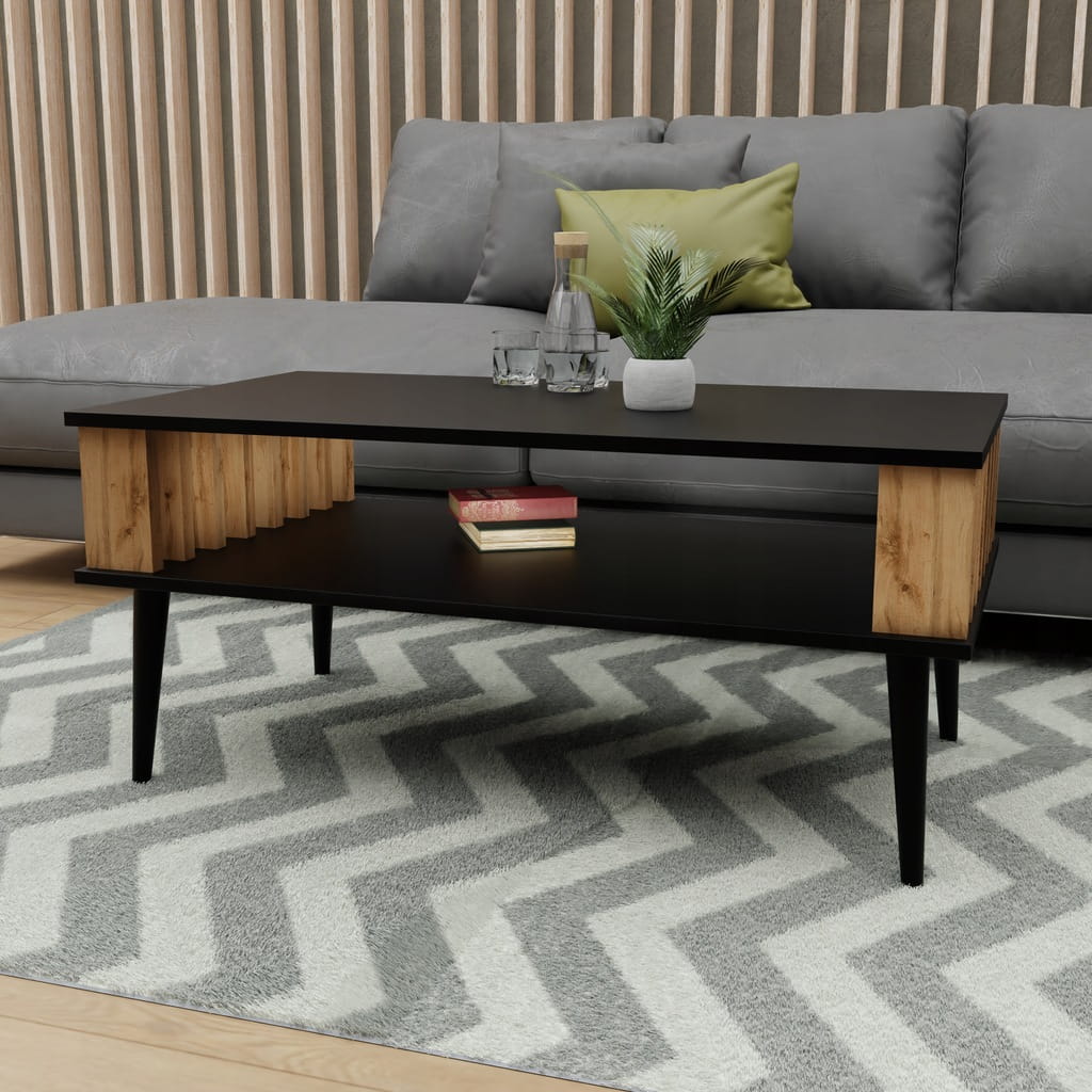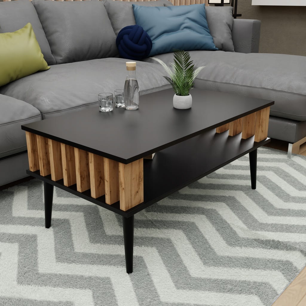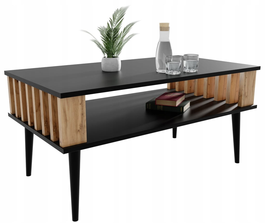 Stolik kawowy LAMELE do salonu czarny/wotan ława