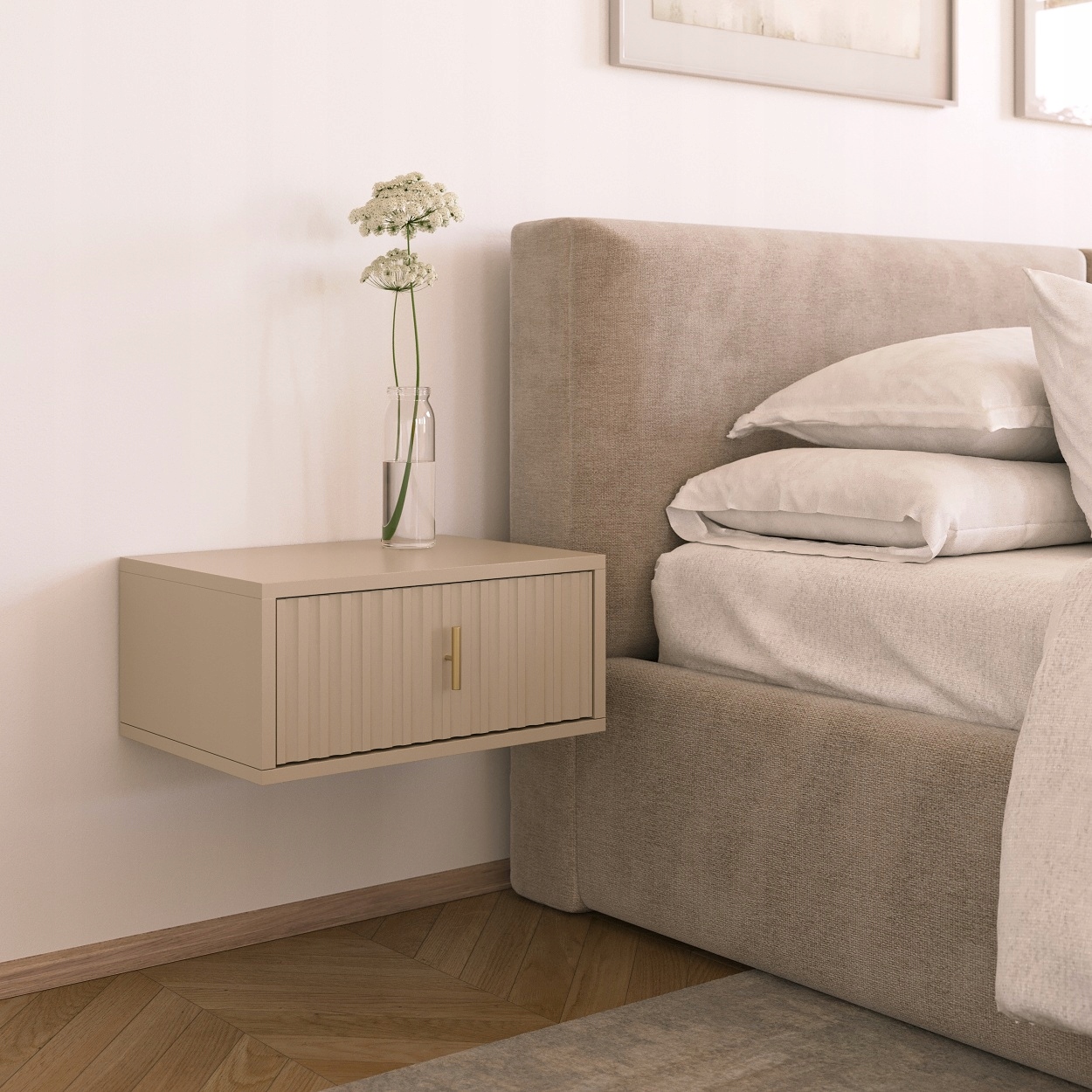 Szafka nocna wisząca z ryflowanym frontem KASZMIR/BEŻ stolik nocny złoty